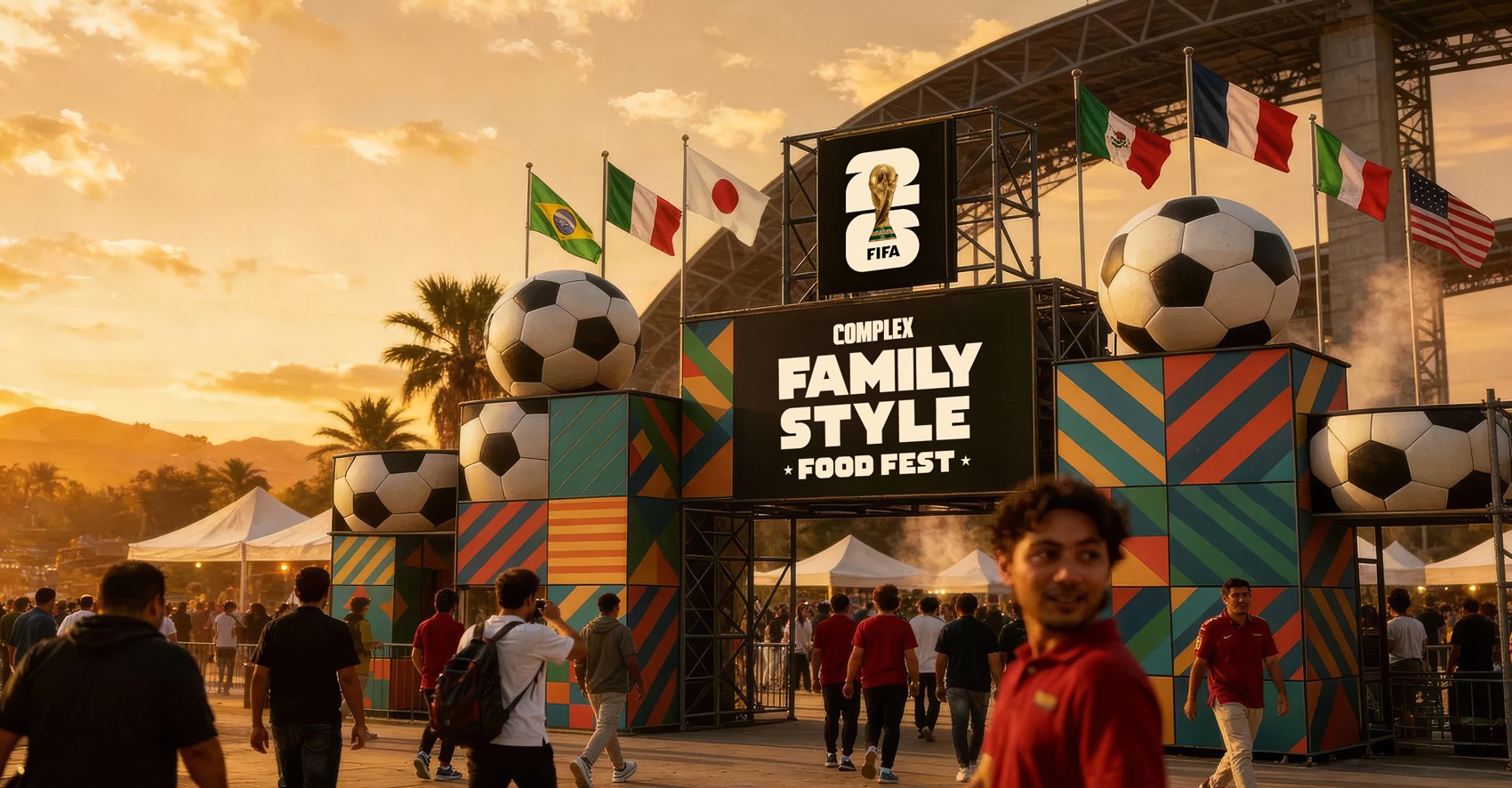 FAMILY STYLE IS A CULTURAL FOOD FESTIVAL PRESENTED BY COMPLEX WHERE CULINARY INNOVATION MEETS STREETWEAR. I LED DESIGN AND PARTNERSHIP DEVELOPMENT ACROSS THE PLATFORM, BUILDING VISUAL IDENTITIES, GEOGRAPHIC ZONES INSPIRED BY CLUB WORLD CUP COUNTRIES, AND MERCH SYSTEMS THAT TURNED DINING INTO A SHAREABLE CULTURAL MOMENT. I DIRECTED THE ART DIRECTION FOR EXPERIENTIAL ENVIRONMENTS, BRANDING, AND PRODUCT — CREATING A COHESIVE WORLD WHERE FOOD, SPORT, AND FASHION CONVERGED.
