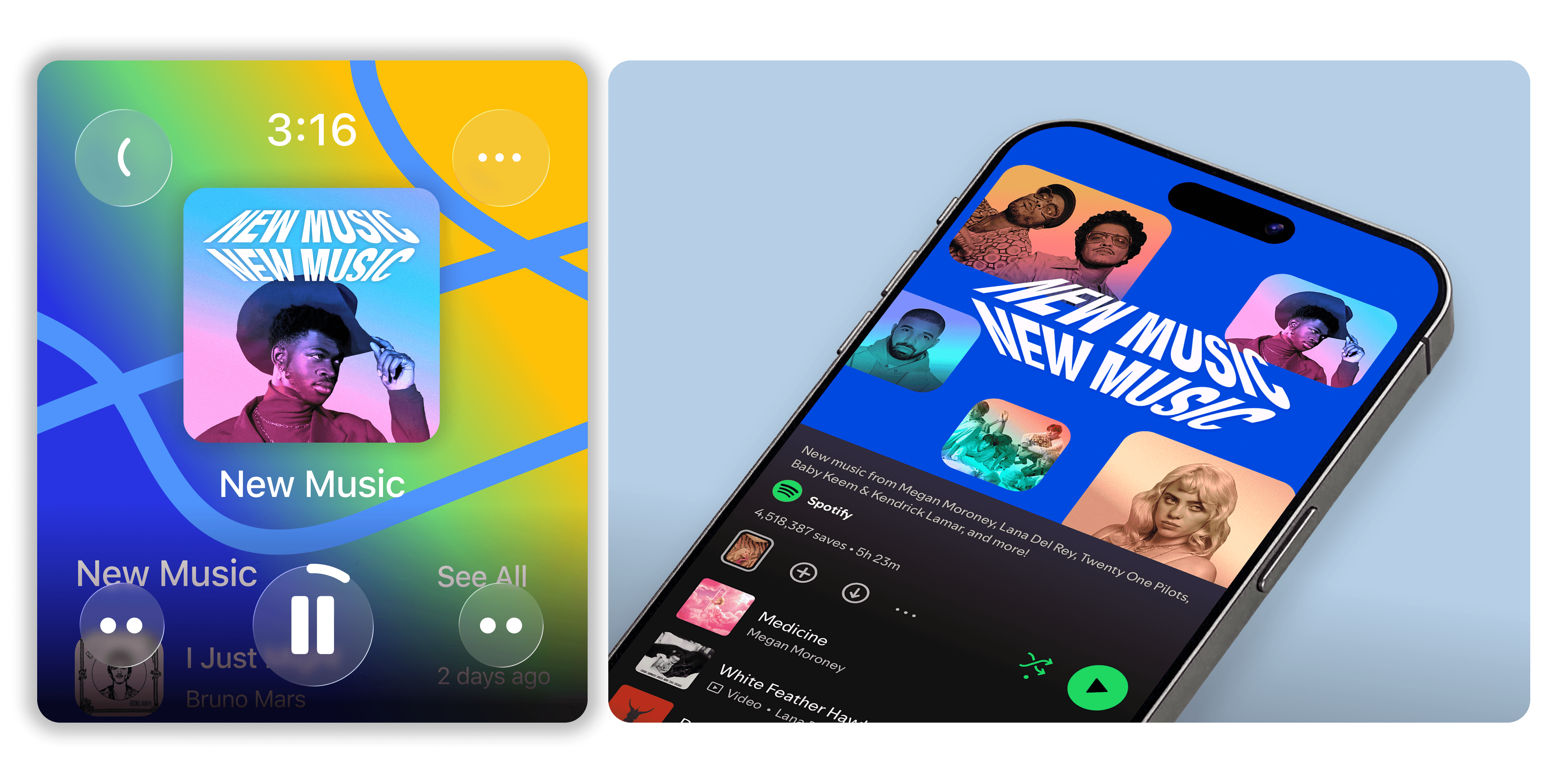 New Music is a weekly visual system built to spotlight fresh releases across Spotify. The logo, color system, and brand language establish a bold, scalable identity for New Music Fridays — a flexible system that updates weekly while staying instantly recognizable.